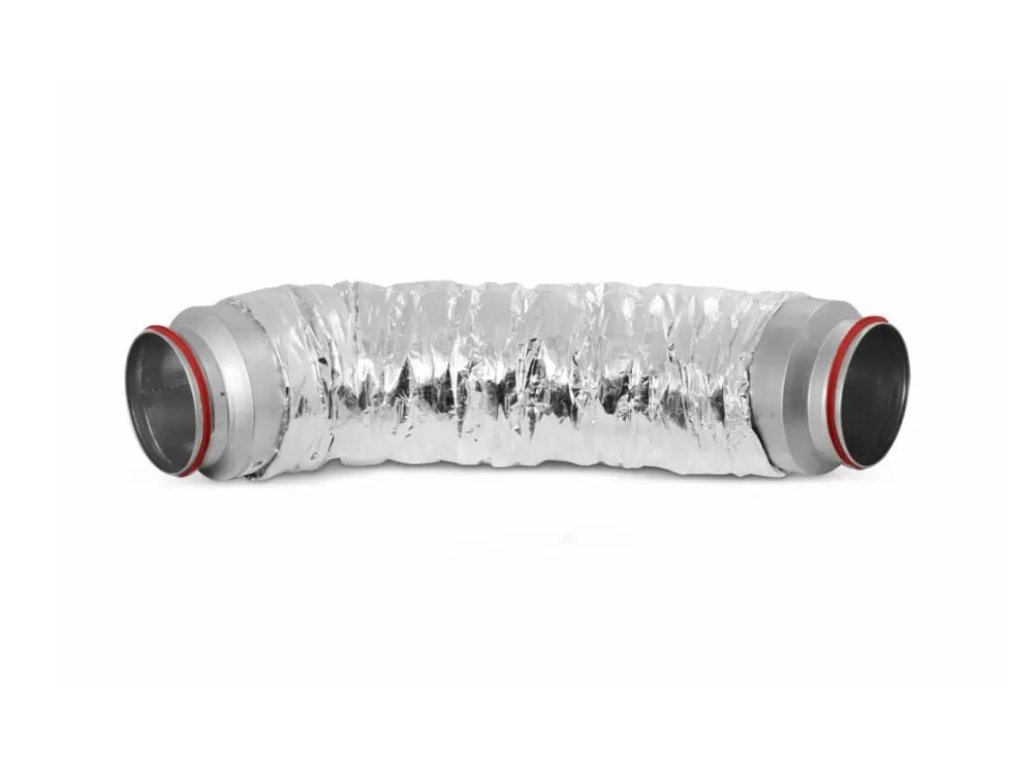 Ukončenie: Tlmič je na oboch koncoch ukončený kovovými prírubami (niplami) s EPDM tesnením, čo zaisťuje veľmi rýchle, bezpečné a vzduchotesné pripojenie (vysoká trieda tesnosti) k potrubiu alebo rekuperátoru.