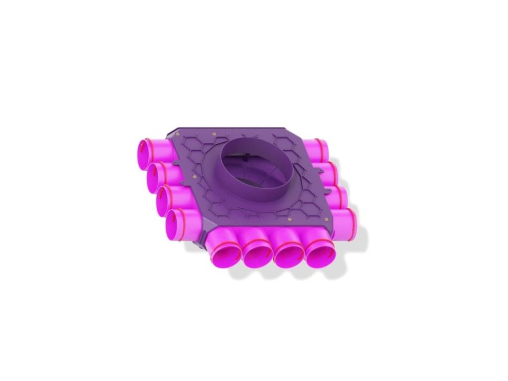 Jednoradový štvorstranný rozdeľovač MAX-VENT 12-75-200 (4+4+4+0) predstavuje spoľahlivé, hygienické a tiché riešenie pre rozvody vzduchu v systémoch rekuperácie.