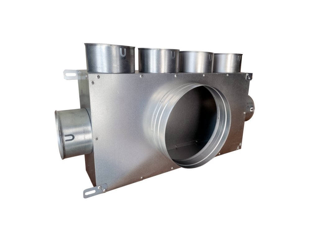 Plechový štvorstranný rozdeľovač SOLVENT 6-90-200 (1+4+1+0) je spoľahlivý prvok vzduchotechnického systému, ktorý spája pevnosť, presnosť a odolnosť.