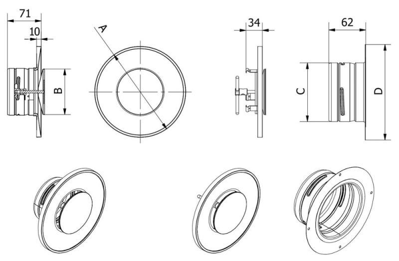 | O [mm] | A [mm] | B [mm] | C [mm] | D [mm] |