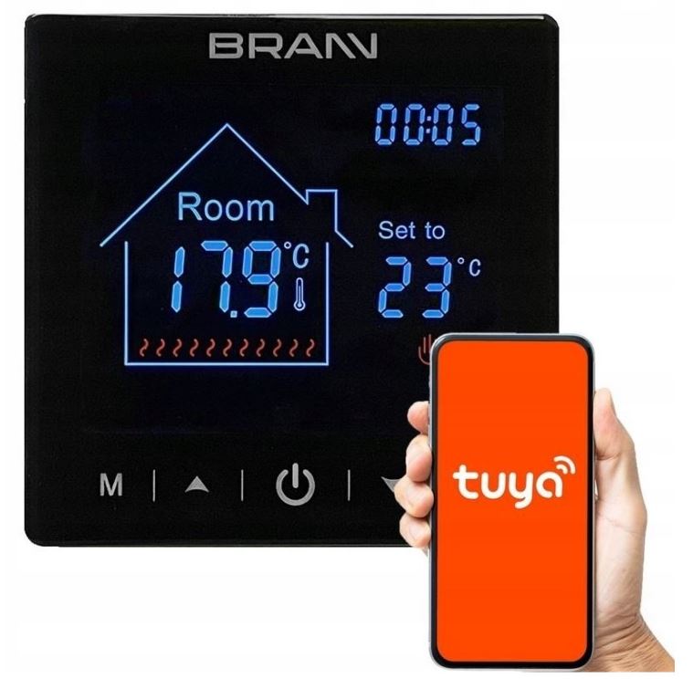 - Ovládanie cez internet: Vstavaný WiFi modul umožňuje vzdialenú správu vykurovania pomocou aplikácie TUYA, dostupnej pre zariadenia iOS a Android. Aplikácia je prehľadná a jednoducho ovládateľná.