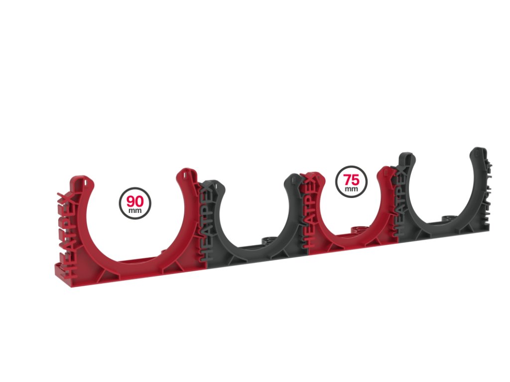 Úchyt ARIA HeatPex pre potrubie Ø 75 mm je základný fixačný prvok, ktorý je nevyhnutný pre kvalitnú montáž distribučného vedenia. Jeho hlavným prínosom je zabezpečenie správneho a stabilného vedenia potrubia pre nízke tlakové straty a tichú prevádzku celého rekuperačného systému. Modularita úchytov navyše umožňuje úsporné a efektívne paralelné vedenie.